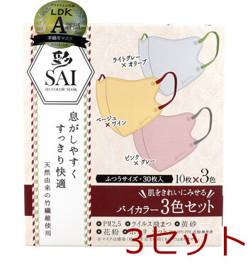 マスク 彩 SAI 立体カラーマスク バイカラー 3色セット ふつうサイズ 30枚入 3セット 送料無料