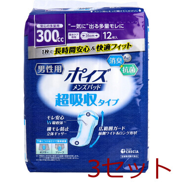 ポイズ メンズパッド 超吸収タイプ 安心の多量用 300cc 12枚入 3セット 送料無料