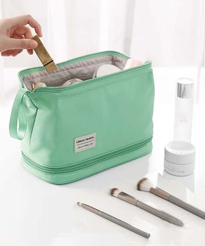 自立 化粧ポーチ 二段コスメポーチ
