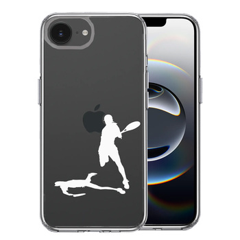 iPhone16e ケース クリア テニス スマッシュ ホワイト スマホケース 側面ソフト 背面ハード ハイブリッド 送料無料
