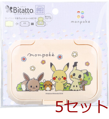 Bitatto ビタット 貼ってはがせるウェットシートのフタ モンポケ ピクニック 1個入 5セット 送料無料