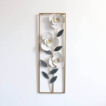 白い椿をモチーフにした色合いが綺麗なアイアンウォールアート、壁飾りです。