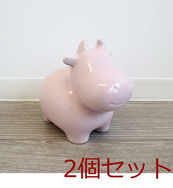 かわいい陶器製 陶器貯金箱 ウシ ライトピンク 2セット 送料無料