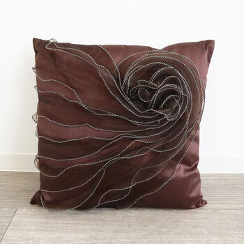 肌触りの良い逸品 スクエアローズクッション ワインレッド