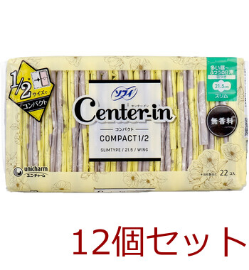 ソフィ センターイン コンパクト1/2 多い昼-ふつうの日用 スリム 羽つき 無香料 22個入 12セット 送料無料