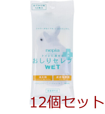 トイレットペーパー ネピア トイレに流せる おしりセレブWET 薬用 おでかけ用 12枚入 12セット 送料無料