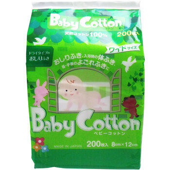 ベビーコットン 天然コットン100% ワイドサイズ 8cm×12cm 200枚入 5セット 送料無料
