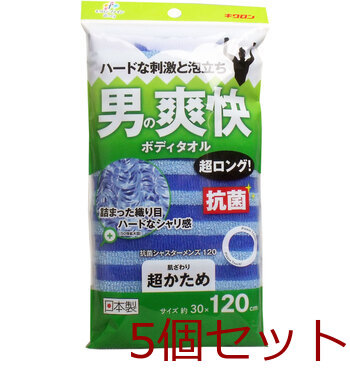 男の爽快ボディタオル 超ロング 抗菌シャスターメンズ120 超かため ブルー 5個セット 送料無料