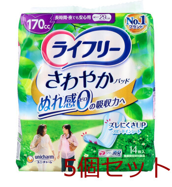 ライフリー さわやかパッド 長時間 夜でも安心用 170CC 14枚入 5セット 送料無料