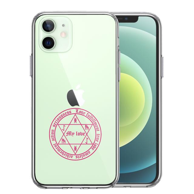 iPhone12mini ケース クリア 白魔術 魔法陣 恋愛成就 ピンク スマホケース 側面ソフト 背面ハード ハイブリッド 送料無料