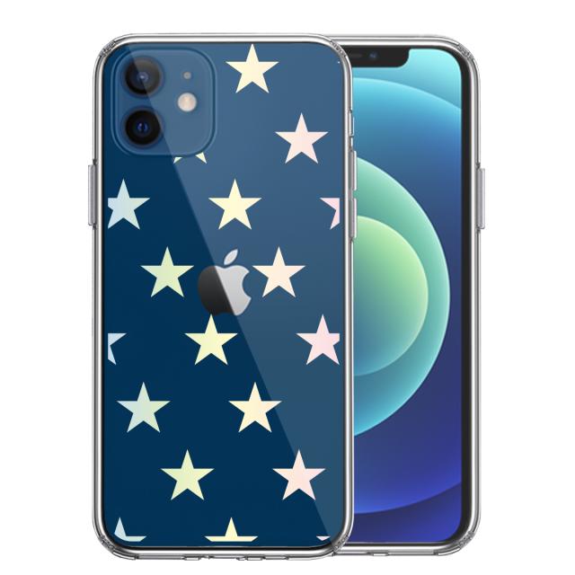 iPhone12mini ケース クリア 星 スター パステル レインボー スマホケース 側面ソフト 背面ハード ハイブリッド 送料無料