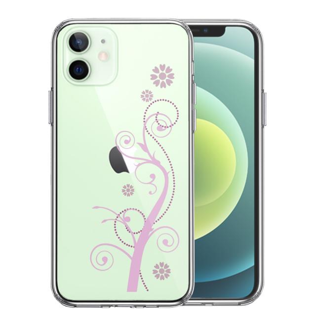 iPhone12mini ケース クリア フローラル つる模様 パープル スマホケース 側面ソフト 背面ハード ハイブリッド 送料無料