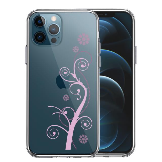 iPhone12Pro ケース クリア フローラル つる模様 パープル スマホケース 側面ソフト 背面ハード ハイブリッド 送料無料