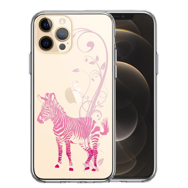 iPhone12 ケース クリア フローラル ゼブラ ピンク スマホケース 側面ソフト 背面ハード ハイブリッド