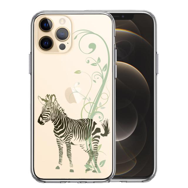 iPhone12 ケース クリア フローラル ゼブラ グリーン スマホケース 側面ソフト 背面ハード ハイブリッド