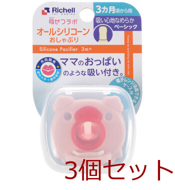 リッチェル 吸せつラボ オールシリコーンおしゃぶり ブタ 3カ月から用 ケース付 3個セット 送料無料