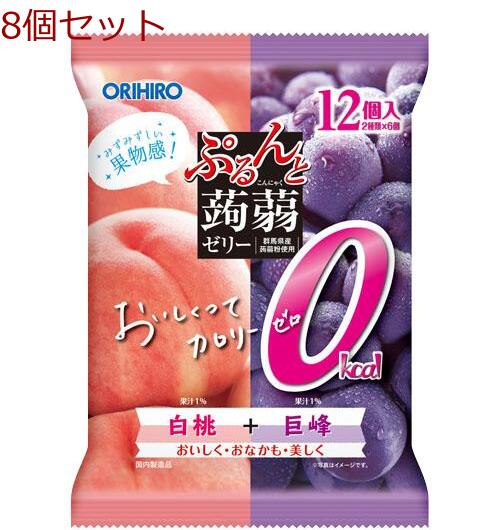 オリヒロ ぷるんと蒟蒻ゼリーパウチ カロリー0白桃+巨峰 8セット 送料無料