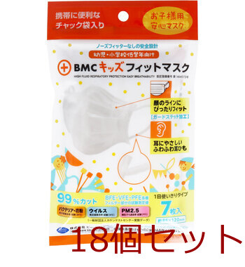 マスク BMC キッズフィットマスク 使い捨てサージカルマスク 幼児 小学校低学年向け 7枚入 18セット 送料無料