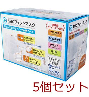 マスク BMC フィットマスク 1日使い切りタイプ レギュラーサイズ 60枚入 5セット 送料無料