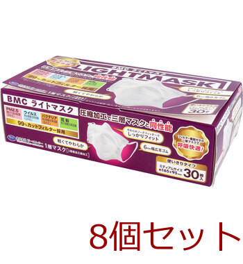 マスク BMC ライトマスク 1層マスク 3層構造圧縮加工 ミディアムサイズ 使い切りタイプ 30枚入 8セット 送料無料