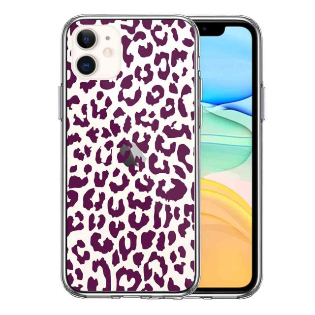 iPhone11 ケース クリア カバー ヒョウ柄 豹 レオパード柄 パープル スマホケース 側面ソフト 背面ハード ハイブリッド 送料無料