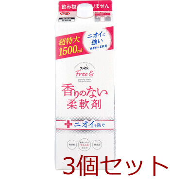 ファーファ フリー&フリーアンド 香りのない柔軟剤 無香料 詰替用 1500mL 3個セット 送料無料