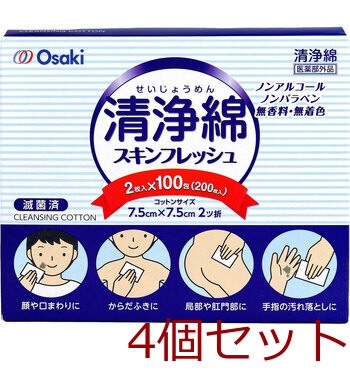 清浄綿スキンフレッシュ 7.5cm×7.5cm 2ツ折 2枚