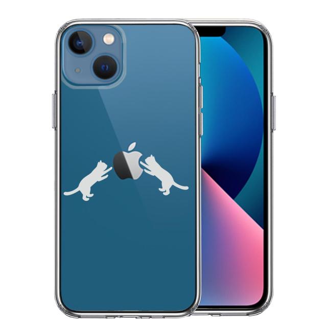 iPhone13 ケース クリアにゃんこ りんご 取り合い