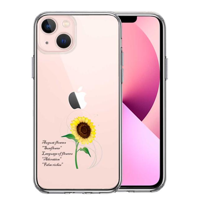 iPhone13 ケース クリア一輪花 8月 ひまわり 向日