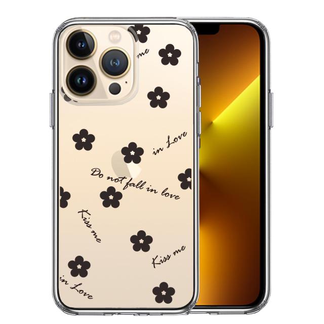 iPhone13Pro ケース クリアフラワー ブラック ス