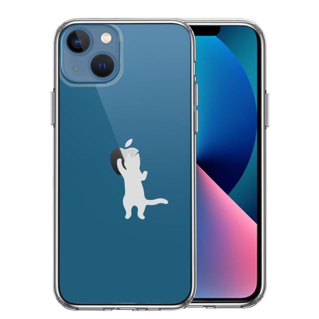 iPhone13 ケース クリアにゃんこ りんご さわさわ 薄いグレー スマホケース 側面ソフト 背面ハード ハイブリッド