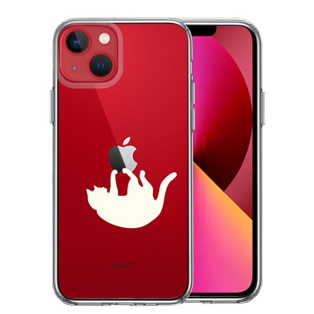 iPhone13 ケース クリアぶらさがりネコ ホワイト スマホケース 側面ソフト 背面ハード ハイブリッド