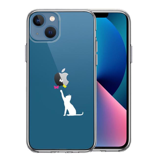 iPhone13 ケース クリア猫 CAT ねこ 蝶々 ホワイト スマホケース 側面ソフト 背面ハード ハイブリッド