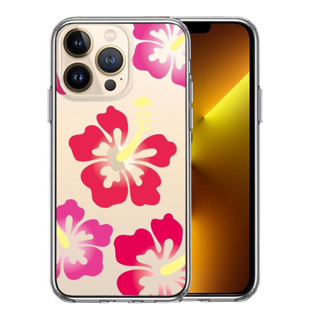 iPhone13Pro ケース クリアハイビスカス ピンク