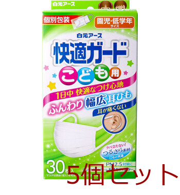 マスク 快適ガードマスク こども用 園児 低学年サイズ 30枚入 5セット 送料無料