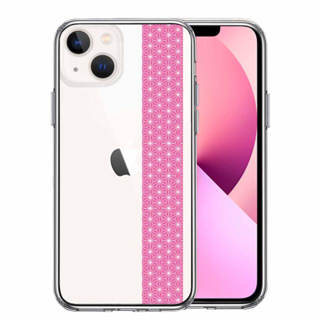 iPhone13mini ケース クリア和柄 帯 麻の葉模様
