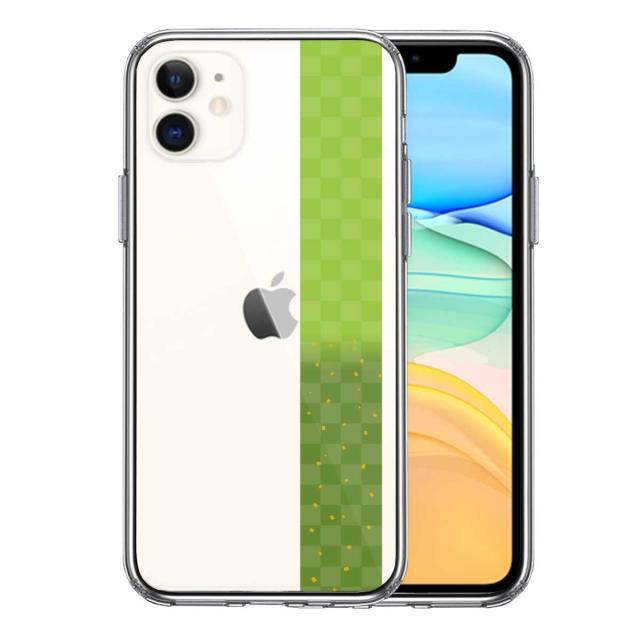 iPhone11 ケース クリア 和柄 帯 市松模様 グリーン 緑 金箔 スマホケース 側面ソフト 背面ハード ハイブリッド 送料無料