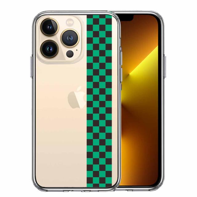 iPhone13Pro ケース クリア和柄 帯 市松 常盤緑 黒 スマホケース 側面ソフト 背面ハード ハイブリッド 送料無料