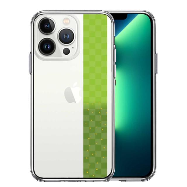 iPhone13Pro ケース クリア和柄 帯 市松模様 グリーン 緑 金箔 スマホケース 側面ソフト 背面ハード ハイブリッド 送料無料