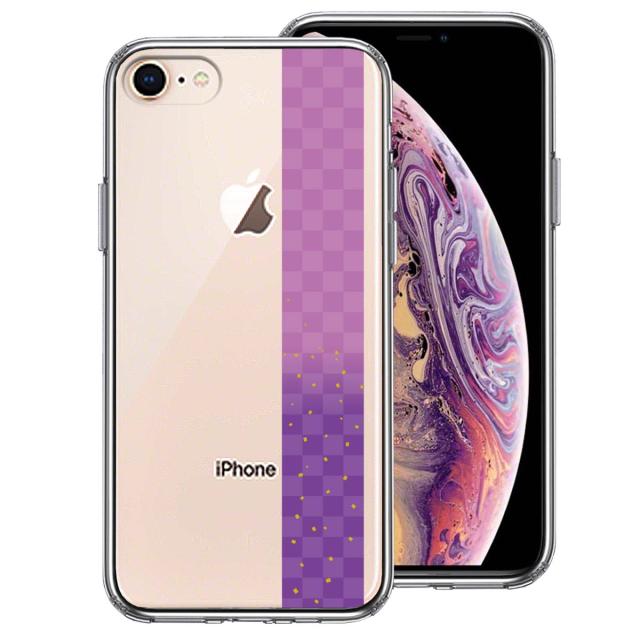 iPhone8 iPhone7 ケース クリア 和柄 市松模様 パープル 紫 金箔 スマホケース 側面ソフト 背面ハード ハイブリッド 送料無料