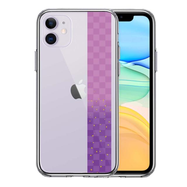 iPhone11 ケース クリア 和柄 帯 市松模様 パープル 紫 金箔 スマホケース 側面ソフト 背面ハード ハイブリッド 送料無料