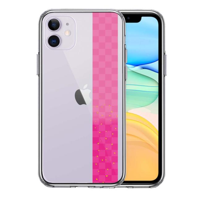 iPhone11 ケース クリア 和柄 帯 市松模様 ピンク 金箔 スマホケース 側面ソフト 背面ハード ハイブリッド 送料無料