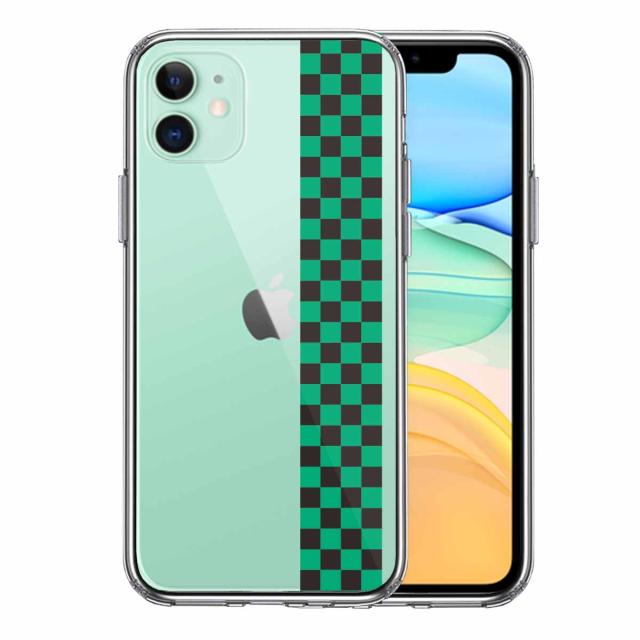 iPhone11 ケース クリア 和柄 帯 市松 常盤緑 黒