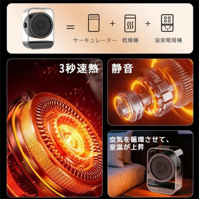 セラミックヒーター 3秒速暖ミニヒーター 温風 即暖 ファンヒーター 小型 省エネ 足元 静音 暖房 大風量 コンパクト 温風 ショック対策 過熱防止 暖房器具