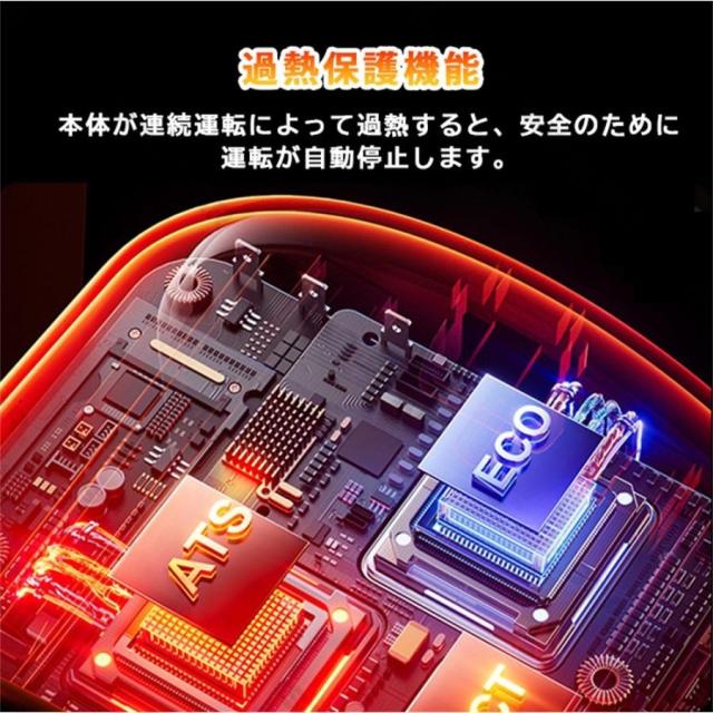 室内ヒーターは、内蔵の過熱保護機能により、使用中常に安定した性能を提供します。過熱が発生した場合でも、心配なく長時間の連続使用が可能で、安全な無人運転をサポートします。ご自宅やオフィス、店舗などの商業施設で、快適な室内環境を維持し、安全性を確保します。過熱保護機能が組み込まれているため、安心してご利用いただけます。過熱保護により、安定した暖かさを長時間持続し、無人運転時のリスクを軽減します。