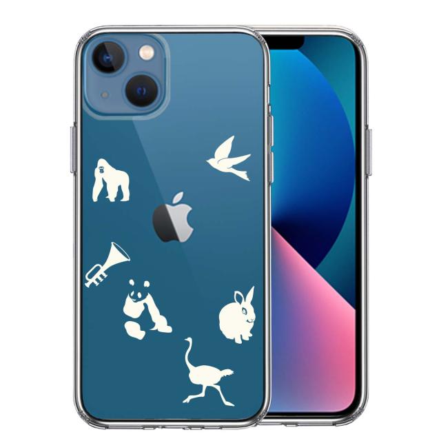 iPhone13 ケース クリア動物 しりとり ホワイト スマホケース 側面ソフト 背面ハード ハイブリッド