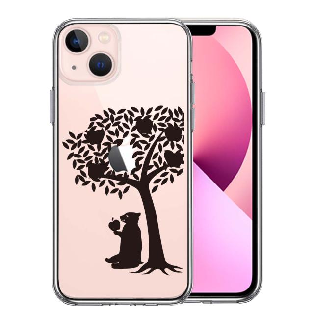 iPhone13 ケース クリアリンゴ食べるクマ スマホケース 側面ソフト 背面ハード ハイブリッド 送料無料