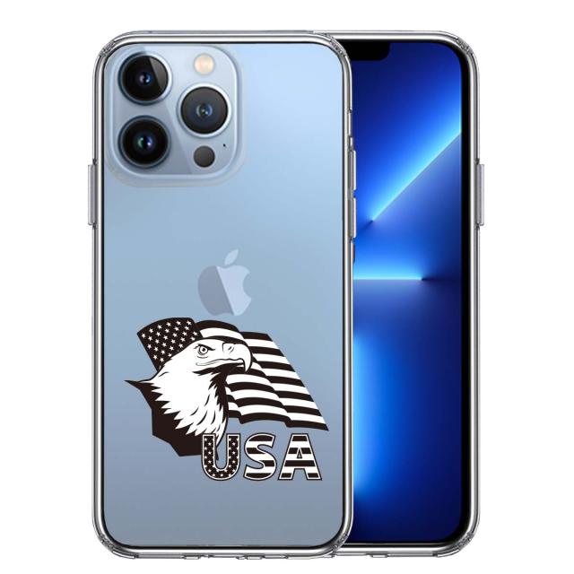 iPhone13Pro ケース クリア白頭鷲 星条旗 スマホケース 側面ソフト 背面ハード ハイブリッド 送料無料
