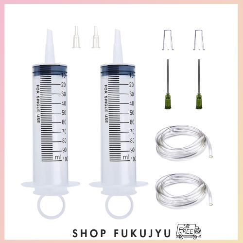 高品質:2パック高品質100 mlプラスチック注射器、キャップ付き鈍針。長さ130cmのチューブが2本付属しています 。 使用または交換に十分です。