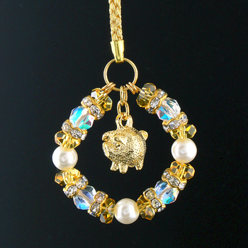 豚パーツ1個(15×10mm 真鍮)、ルナフラッシュ4個(6mm珠/スターカット)、黄水晶8個(6×3mm/カット)、樹脂パール3個(6mm珠)、ロンデル8個(6×3mm 真鍮/ラインストーン)[サイズ]約11cm[重量]約9g[中糸]アーティスティックワイヤー[付属品]専用巾着袋、とんとん拍子カード[個装サイズ]縦13.8×横8.5×高さ1.5(cm)/14(g)